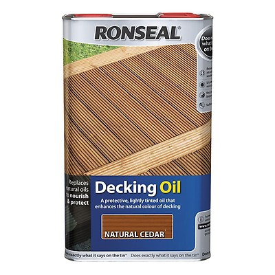 Ronseal decking oil is a durable scuff resistant tinted oil that forms a waterproof barrier to protect against weathering warping swelling drying and splitting.