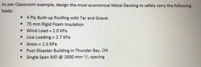 As Per Classroom Example Design The Most Economic Chegg Com